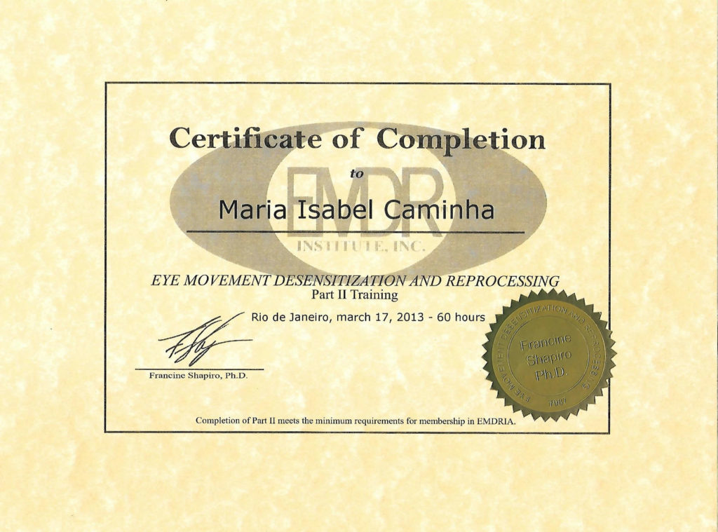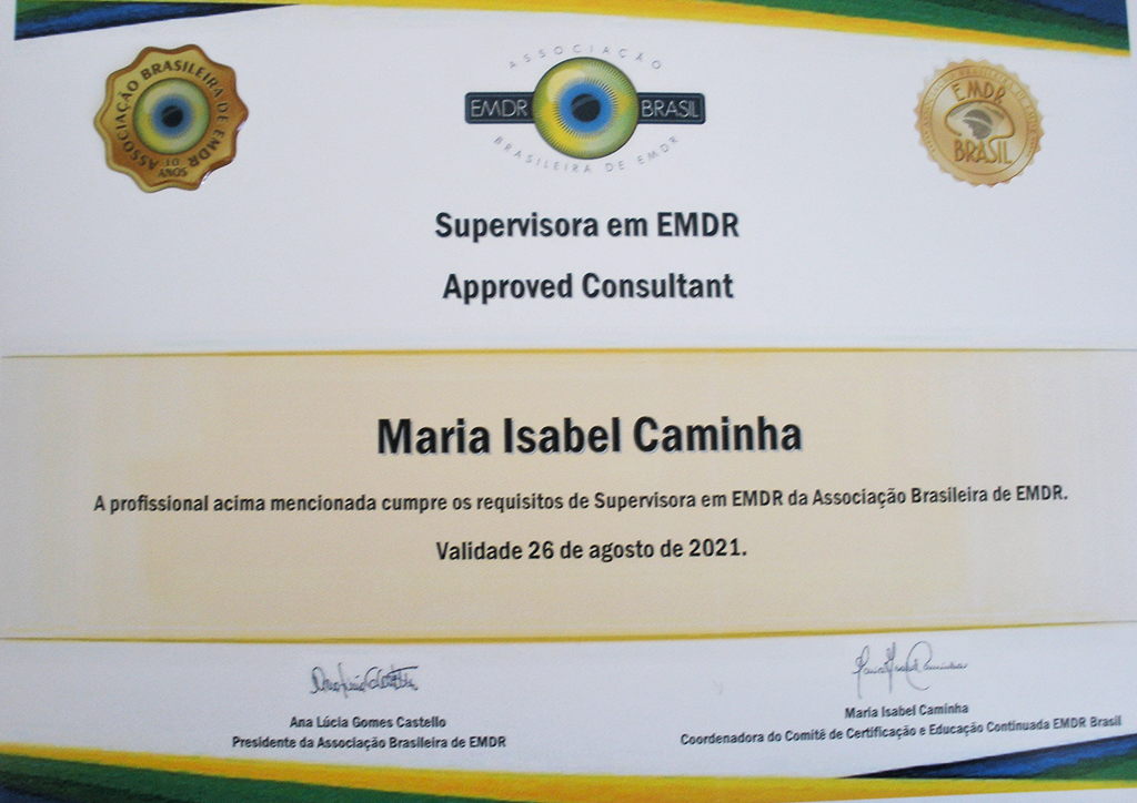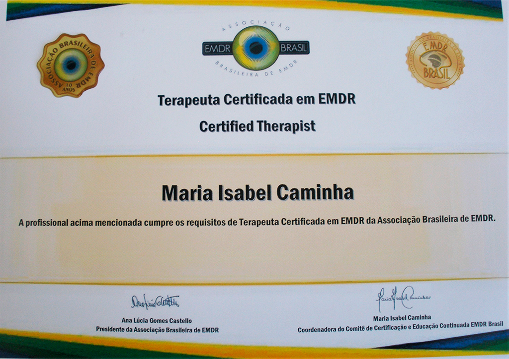 Facilitadora em EMDR pelo EMDR Institute, Inc.;